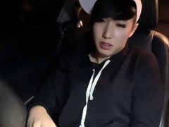 Skinny ladyboy with huge boobs gets her hairy cock sucked